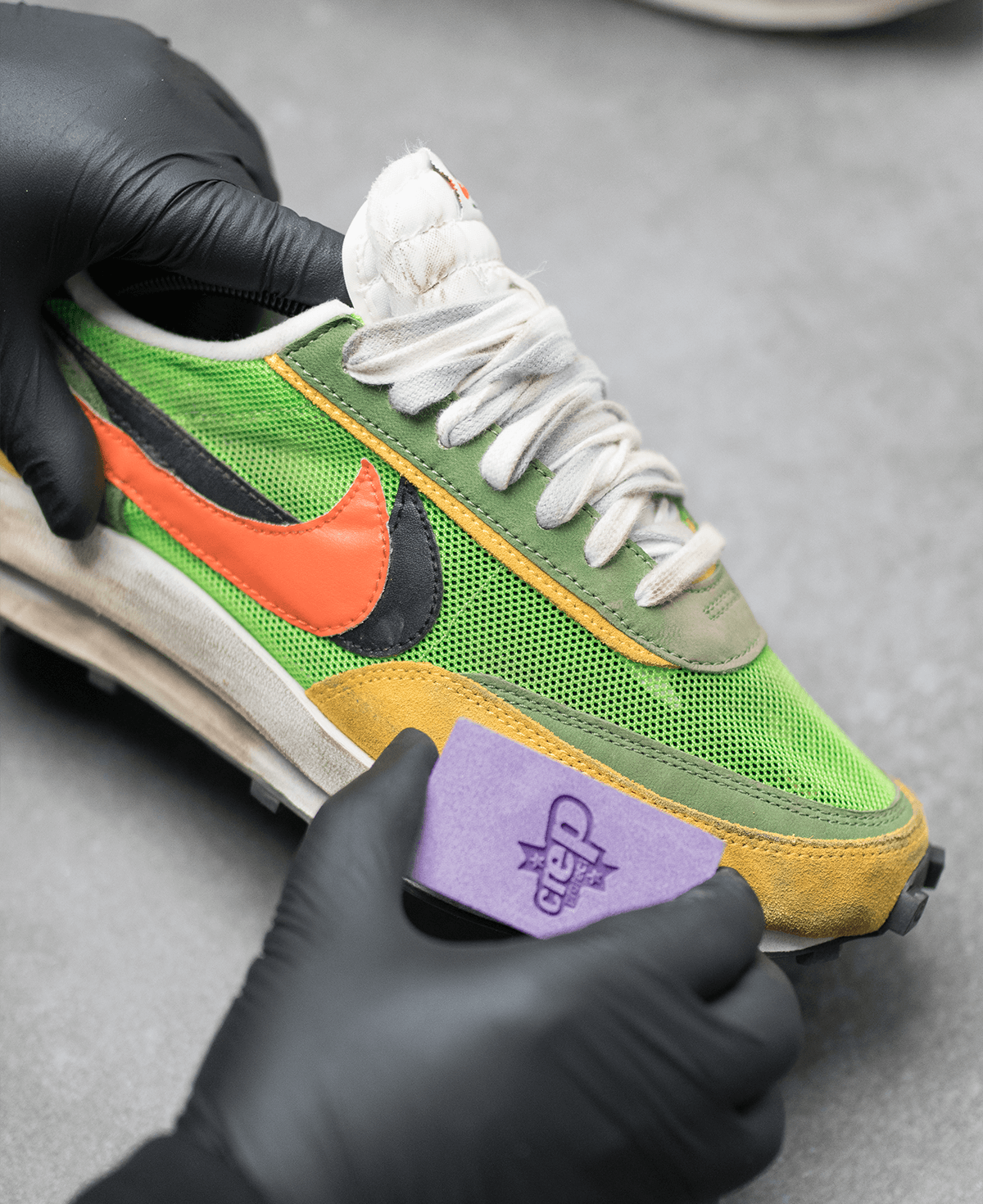 Use our premium sneaker brush - Suitable for all materials (Use on leather, suede, nubuck, canvas, nylon and vinyl)