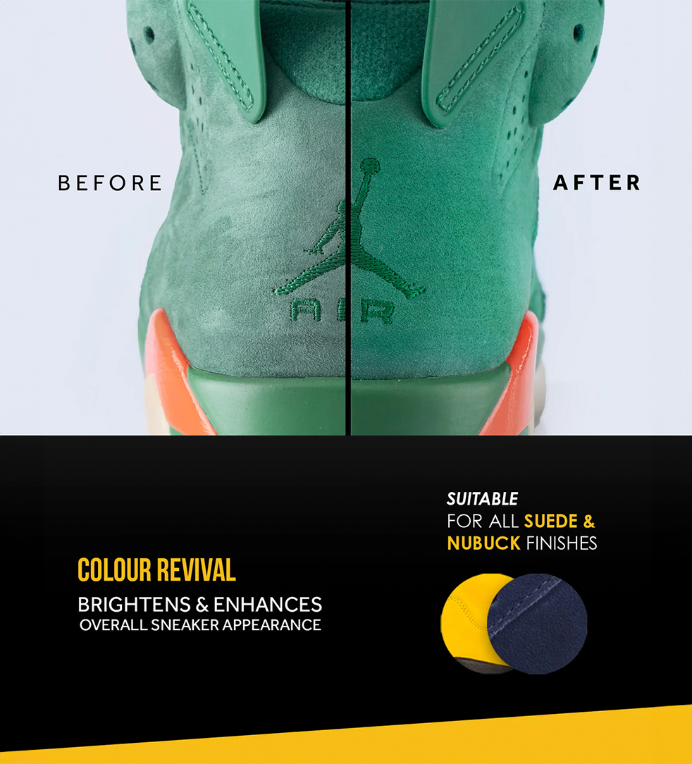 The main function of the product is to restore and revitalise the texture and colour. For protection against future stains and damage, consider using our Crep Protect Spray.